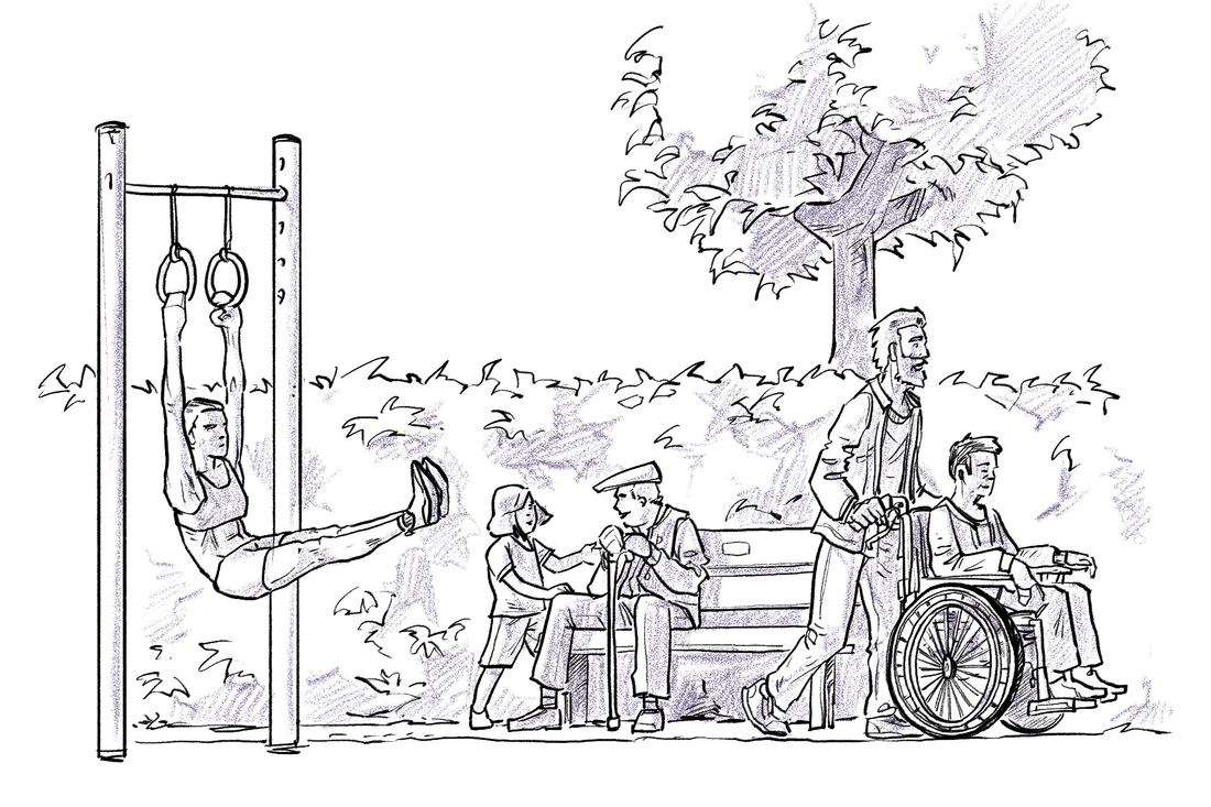 - Wird Bewegung zusammen mit anderen Menschen ausgeübt, wird auch die soziale Integration der Generationen und verschiedener kultureller Gruppen erleichtert.
