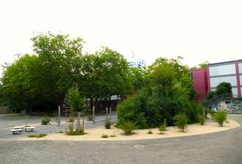 Die Schulumgebung wurde naturnah umgestaltet und dient als Beobachtungs-, Entdeckungs-, Forschungs-, Entdeckungs- und Lernraum. Es entstand ein Naturgarten mit einem Begegnungsplatz, Obstbäumen, Naschhecken, Kleinstrukturen für Tiere und ein Schulgarten mit Gartenhaus und Beet. Die «Wäldli» beim Peterskeller und Schibler wurden naturnah aufgewertet und dienen als Aussenschulklassenzimmer. Ebenso wurden die Vorplätze der Aula und des Schulhauses Schibler teilweise entsiegelt, mit Sitzgelegenheiten und Kletter- und Balancierelementen ergänzt bzw. naturnah aufgewertet.